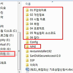 실제로 우리는 보통 USB 메모리 카드에 다양한 개인정보를 지니고 다닙니다.USB에 02 개인정보 폴더에 들어가면 통장사본, 주민등록등본 사본, 성적표 등 다양한 개인정보를 가지고 있습니다. 여기서 추가 TIP입니다.자료를 정리 보관하실 때 위에 보이는 사진처럼 폴더를 Index로 번호를 매겨 정리하시면 보기도 좋고 자료 찾기도 좋습니다. 지속해서 정리하는 습관을 들이시면 중복 파일의 수도 줄일 수 있습니다. 빨간 사각형들을 보이십니까? (드라이브에 제 이름이 있어서 모자이크했는데 bitlocker 아이콘까지 모자이크해버렸습니다. TT) NPKI 폴더는 조만간 사라질 공인인증서가 담겨있는 폴더입니다. 공인인증서가 암호화가 되어 있더라도 해커의 손에 넘어가면 큰일이 일어날 수 있습니다. USB는 크기도 작..